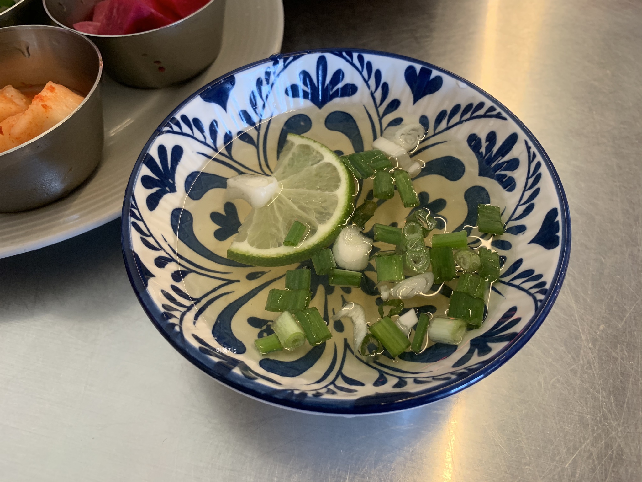 이 새콤달콤한 소스에 야채와 고기, 그리고 면을 함께 찍어먹으면 입 안에서 맛의 환상의 조화가 일어납니다