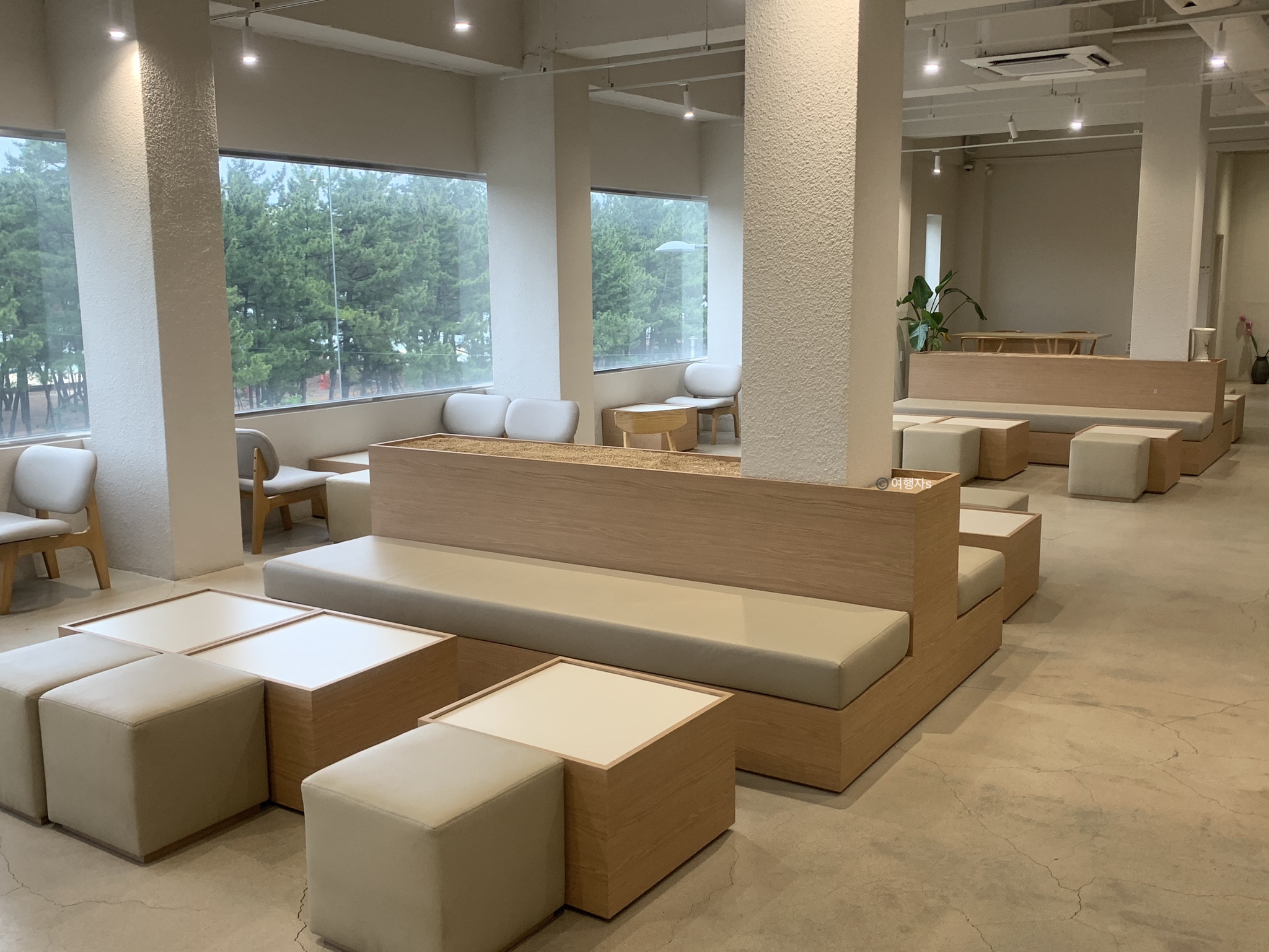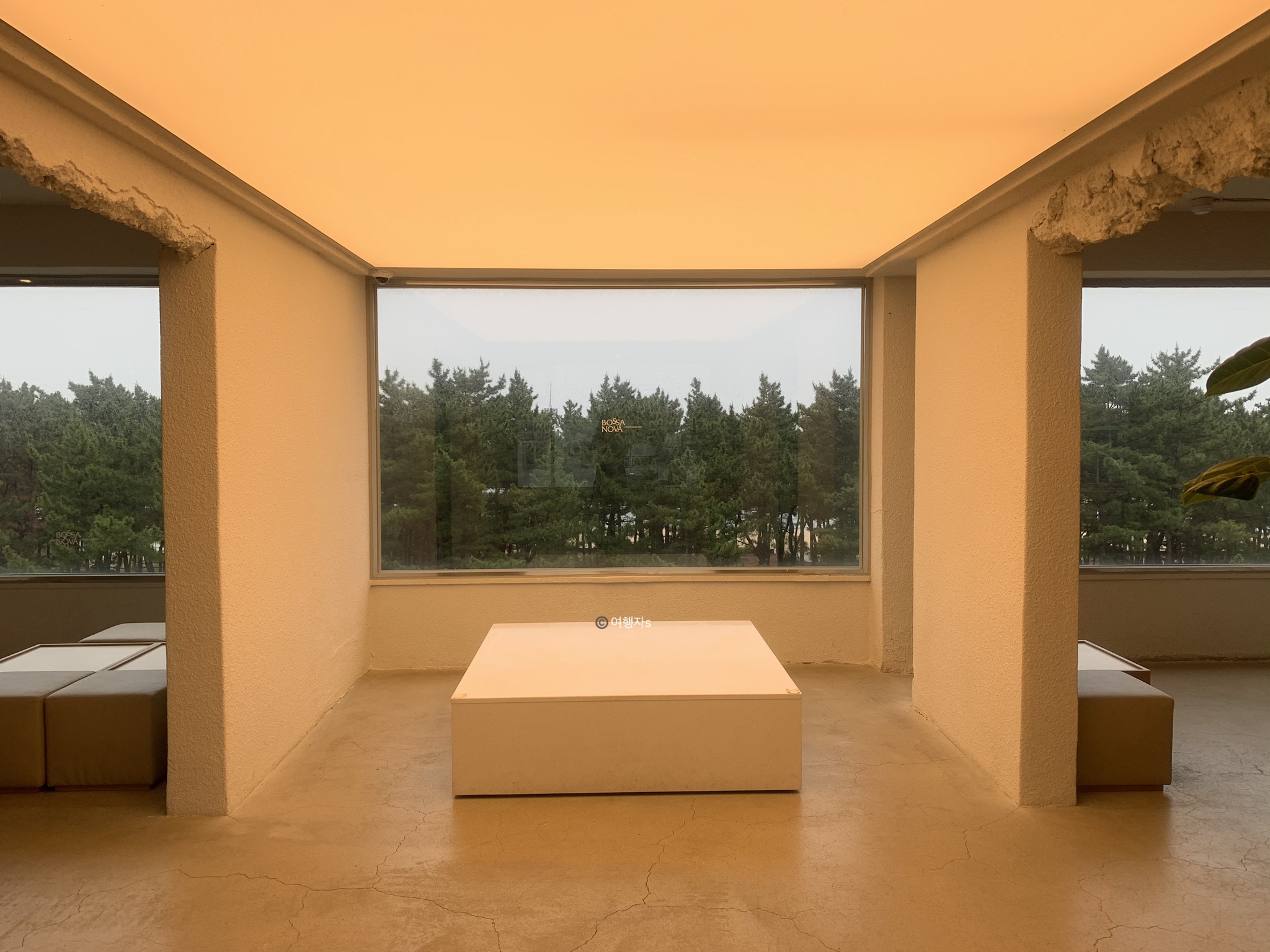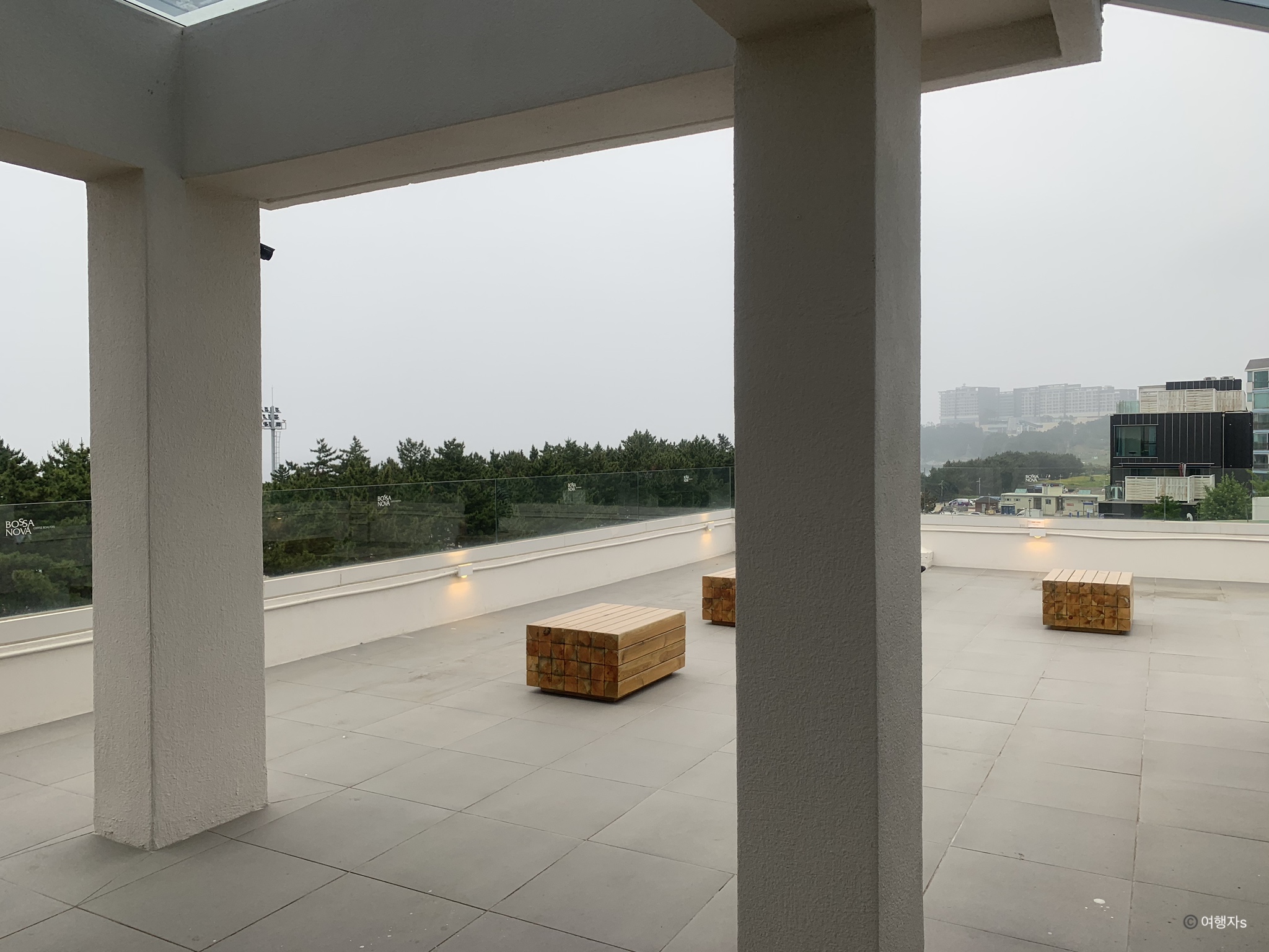 인스타에서 많이 보이는 포토존은 3층에 위치하고 있습니다. 좌석 중 하나가 아니라 아예 카페측에서 포토존으로 만들어놔서 편하게 사진을 찍을 수 있어요! 날이 흐린날에도 물론 운치있지만 맑은날 오면 파란 하늘과 소나무가 어우러져서 더 예쁜 사진이 나올 것 같아요! 속초해변 바로 앞에 위치하고 있기 때문에 바다를 구경하다가 더우면 카페에 들어가서 쉬기 좋아요!